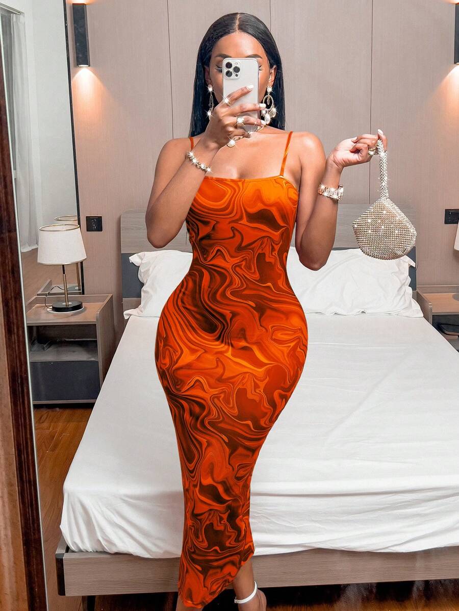 SHEIN Clasi Marble Print Cami Bodycon Dress For New Year Clothes Maxi Women Outfit