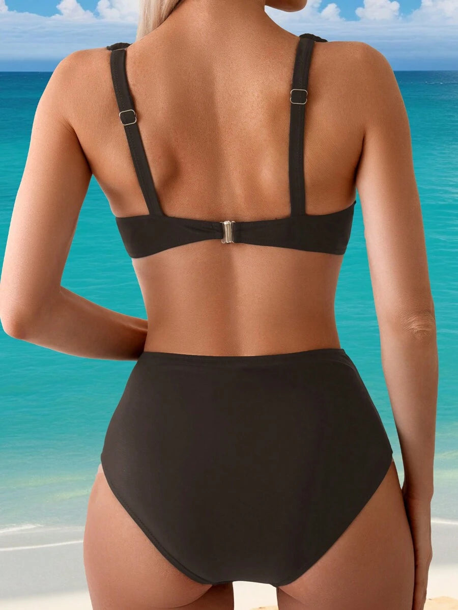 Swim Vcay Bra-Sized Swimwear (Number Cup) V-Neck Push Up Underwire Wide Strap Bikini Set For Summer Beach Vacation